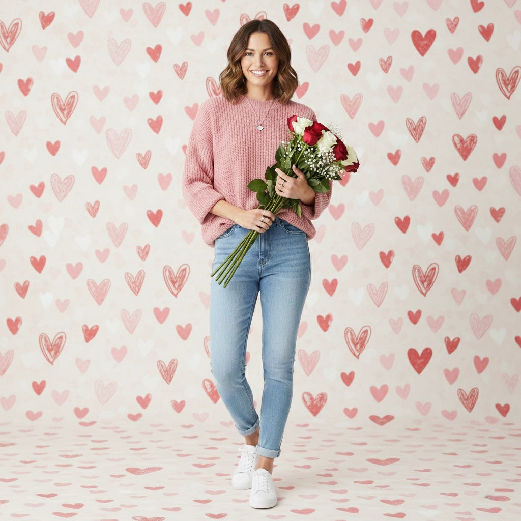 Flower Plaid Henley Baggy Sweater